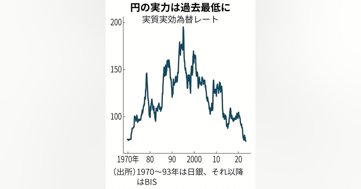 円の実力、過去最低 8月、円安響き1970年を下回る - 日本経済新聞