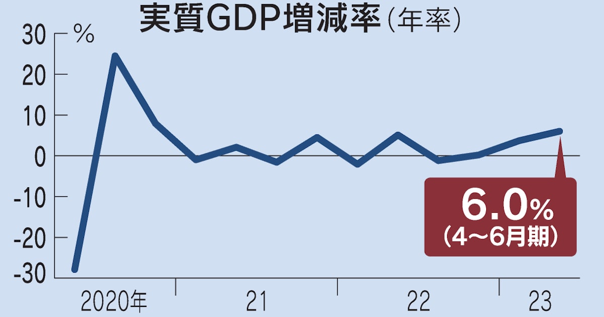 GDP年率6.0%増 4~6月、3四半期連続プラス