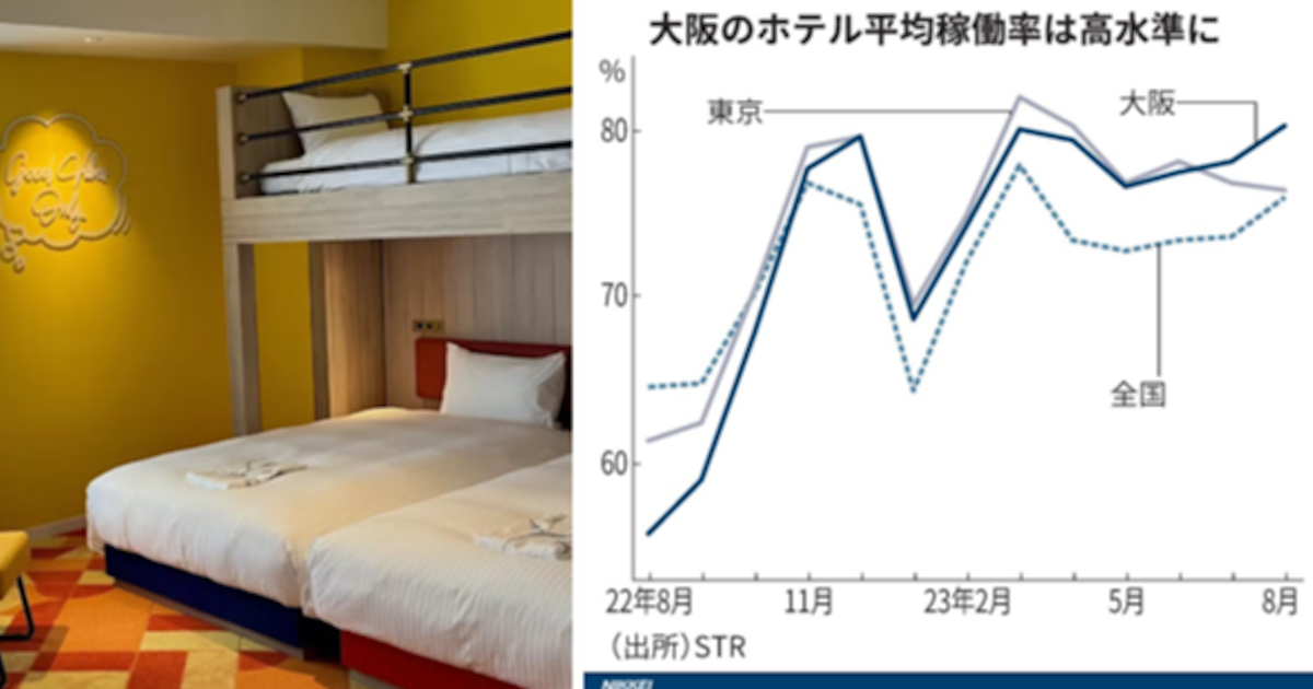 大阪で宿泊需要の戻りが顕著だ。8月の大阪府のホテル平均稼働率は80%で東京都(76%)を上回って新型コロナウイルス禍前の水準に迫る。関西国際空港の国際線旅客数が2019年同月の7割に達するなど、インバウンド(訪日外国人)の増加や国内旅行の回復が後押しした。高級ホテルの新規開業や既存ホテル改装も相次ぎ、宿泊料金も上昇している。